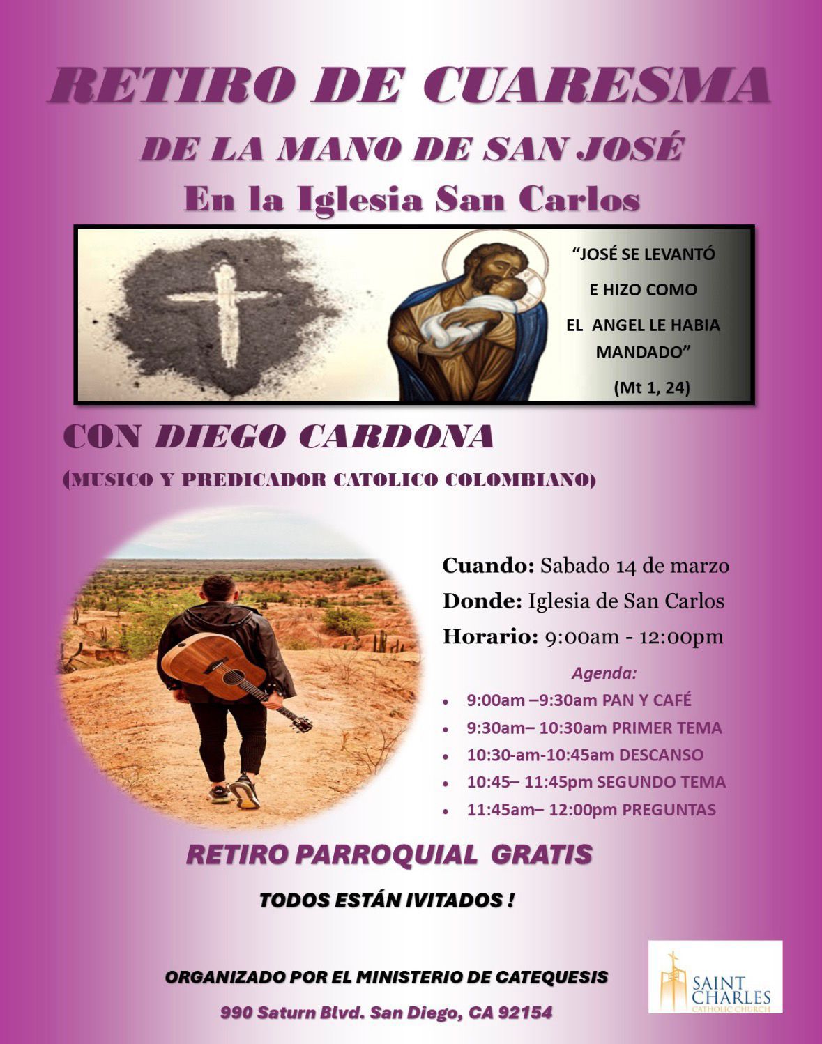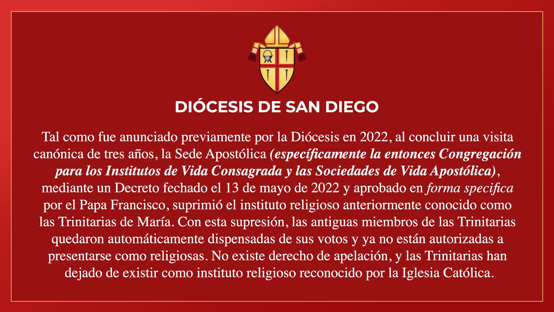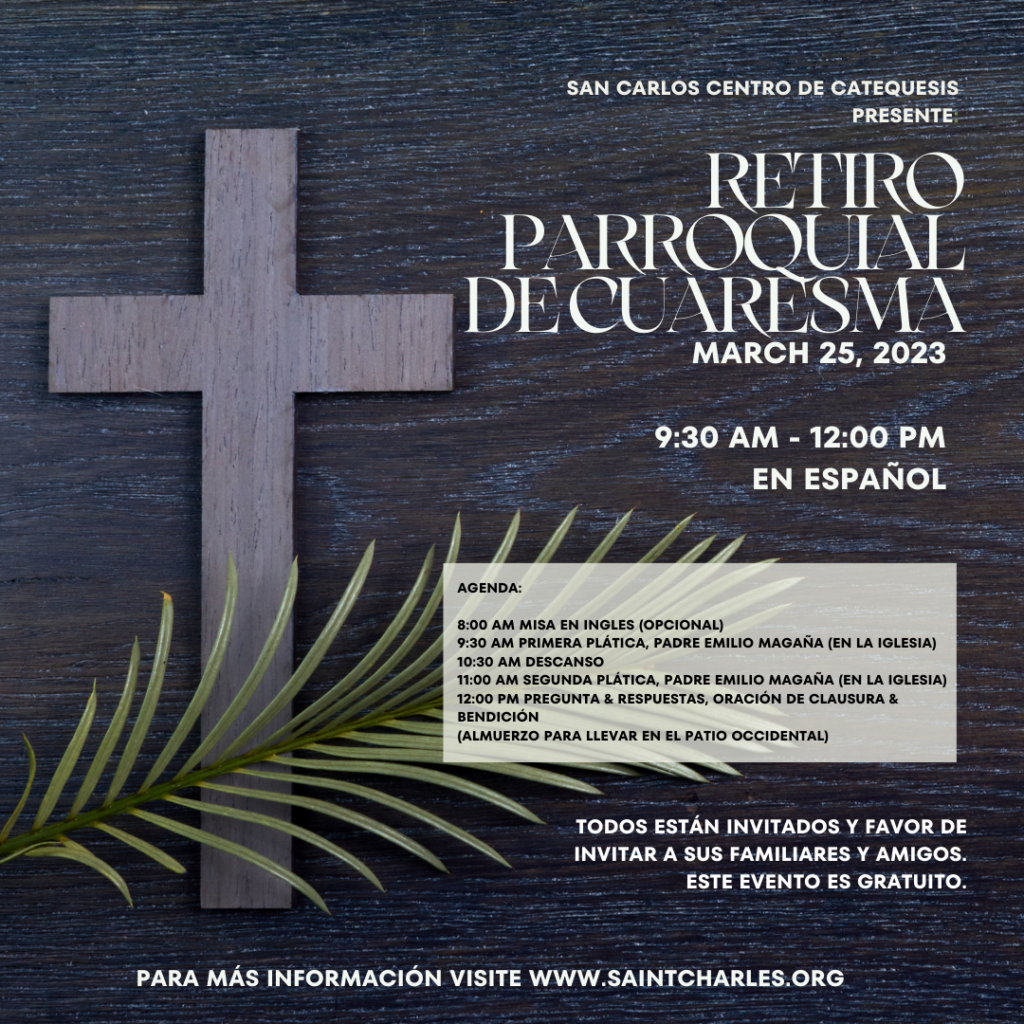 Por lo tanto, lo invito a considerar en oración su respuesta, tomando en cuenta los dones que Dios le ha concedido. Puede escribir la cantidad a la que se compromete en la tarjeta de respuesta que viene adjunta y devolverla en la colecta del fin de semana, en la oficina parroquial o enviarla por correo a la oficina. Para obtener más información o para hacer un compromiso o una donación segura en línea visite la página sdcatholic.org/giving y escoja Annual Catholic Appeal. También puede hacer un regalo a través de una donación de acciones o IRA en sdcatholic.org/giving/stock-donations. Si en este momento le es imposible hacer una donación, le pedimos que ore por una exitosa colecta anual para nuestra parroquia.
